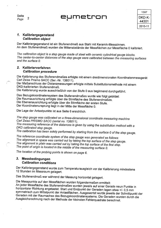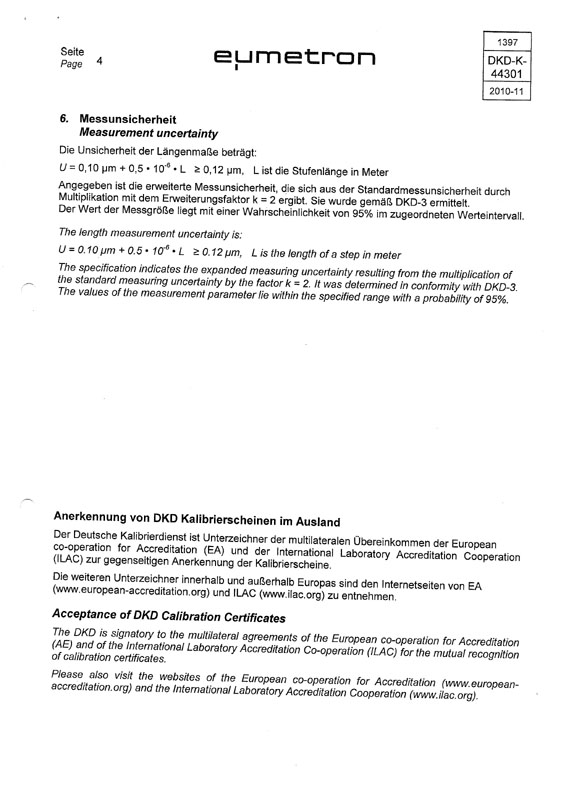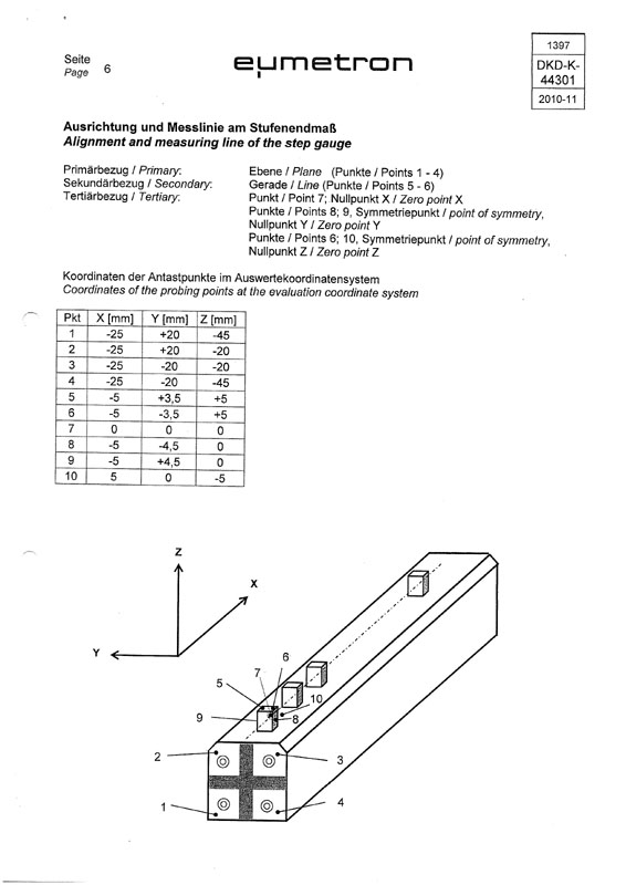 Calibration Certificate of Precision Step Gauge issued by Deutscher kalibrdiet D